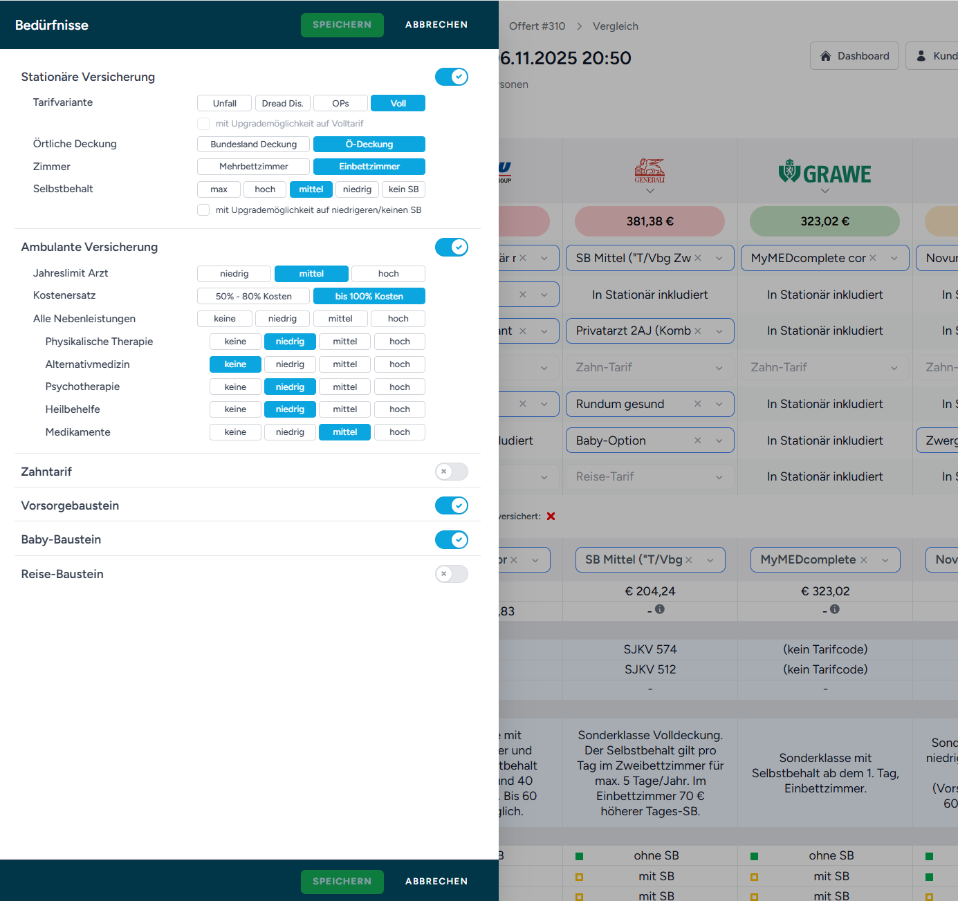 Mit wenigen Klicks erhältst du auf Basis der Kundenwünsche von jedem Versicherer die bestmögliche Tarifkombination.